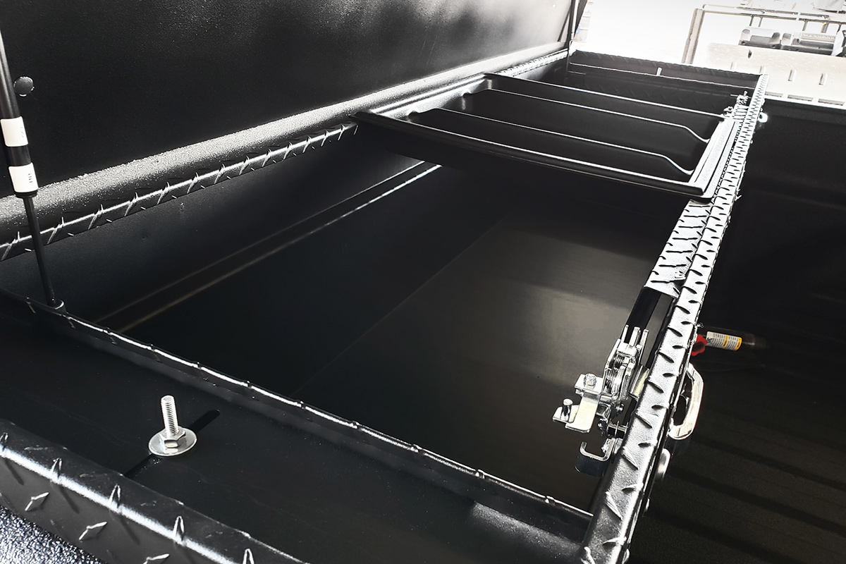 Some items don’t do well outside the truck and should be stored in the vehicle’s cab. To keep them organized an underseat storage bin can be bought and installed. It keeps many of your common truck items dry, safe, and cleaner than a toolbox. A common thing to keep out of sight in this area are firearms, sensitive tools, and other high-ticket items.
